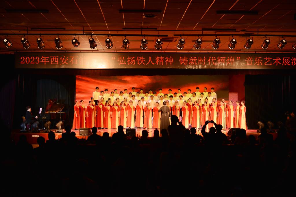 12月8日晚,由校团委、音乐系联合举办的“弘扬铁人精神 铸就时代辉煌”音乐艺术展演在鄠邑校区腾辉大学生活动中心举行。副校长张君涛,相关职能处室、院(系)负责人,鄠邑校区师生共计800余人观看了演出。
