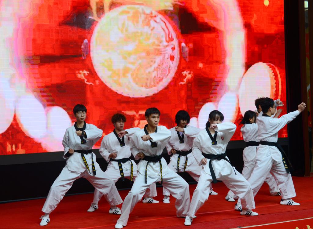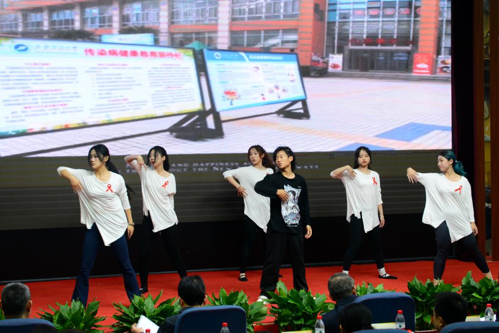 活动中,同学们穿插表演了舞蹈《拥抱我》、舞蹈《心的呼唤》、三句半《新四大才子》、跆拳道和舞台剧《我的“艾”情》等节目,既展示了同学们的青春活力,也用生动活泼、简单易懂的形式告诉大家有关艾滋病的知识。通过人物角色扮演讲述在不同场景中出现的易感染艾滋病病毒的行为,以创设真实情境和模拟现实人物的形式引导同学们对艾滋病防控进行深入的思考,找到预防疾病侵袭、得到幸福生活的路径和答案。