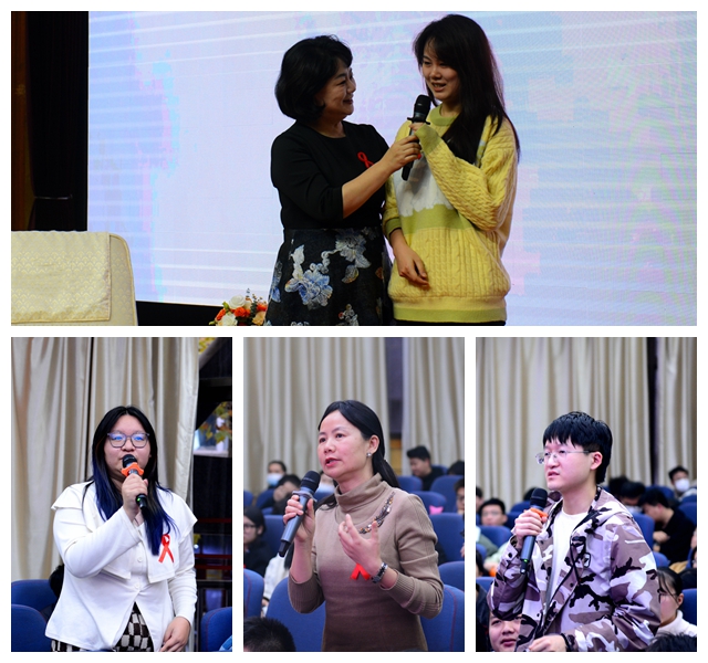 访谈环节,“红丝带”健康大使鞠萍与孙永涛教授、任强所长通过专家访谈、师生提问互动等方式,娓娓道来,为同学们详细讲解了艾滋病的传播途径、感染风险、预防措施,引导学生树立正确的价值观,正确认识艾滋病,对待艾滋病,共同维护健康和谐的校园生活,努力成长为能吃苦、敢担当、有理想、肯奋斗的新时代好青年。