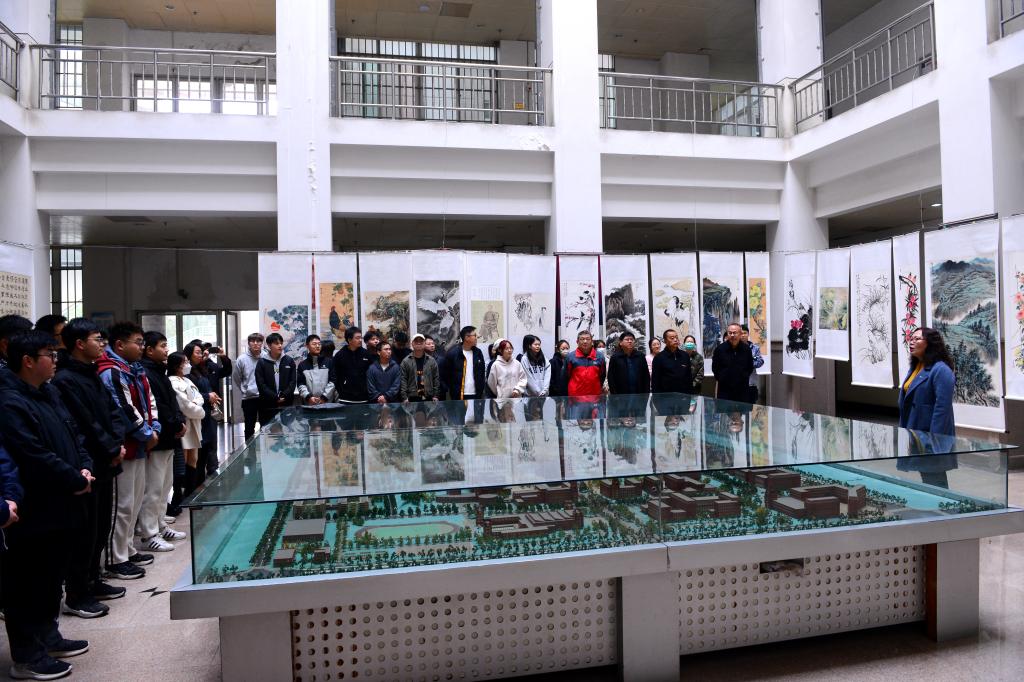 最后他希望广大书画爱好者在新时代要创作出新的时代风貌,用初心做画笔,以激情当颜料,创作出无愧于时代的作品。更希望借助于本次展览吸引更多的书画爱好者加入到书画协会当中来,把学校校园文化建设推向新的高度。