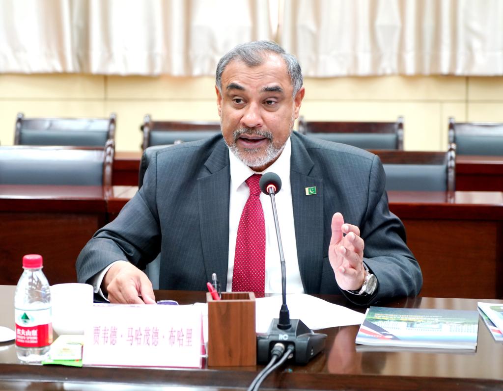 常江对布哈里一行来访表示热烈欢迎,并简要介绍了学校发展历史与办学特色。他表示,巴基斯坦是习近平主席提出的共建“一带一路”倡议最早参与国之一。巴基斯坦国立科技大学是巴基斯坦顶尖研究型大学。围绕“一带一路”倡议及中巴两国合作,学校希望发挥自身特色,与巴基斯坦国立科技大学在能源研究、信息技术、基础建设等领域开启新合作。