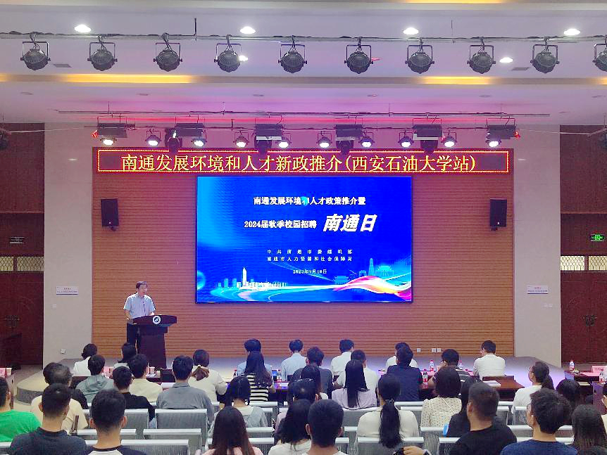 张木致欢迎词,对江苏省、南通市人社部门及招聘企业的到来表示热烈欢迎,详细介绍了beat365及2024届毕业生生源情况。他表示,南通市拥有独特的区位优势和广阔的就业市场,对高校毕业生人才具有强大的吸引力。西安市作为西部教育重镇,拥有巨大的人才体量,“你有位、我有才”就能珠联璧合。南通市坚持人才优先发展战略不动摇,进一步优化顶层设计,全力推进人才体制机制创新,着力破除制约人才发展的制度藩篱和政策壁垒,大力吸引人才来通就业创业,全市人才发展环境明显优化,区域人才竞争力显著提升,引才聚才效应不断凸显,人才成为推动南通产业升级和科技竞争力全面提升的“助推剂”。在此,他诚挚邀请南通市领导、对口企业来校开展各类人才供需对接活动,不断深化校地、校企合作,并祝愿南通市能“聚贤汇能”“人才通达”。