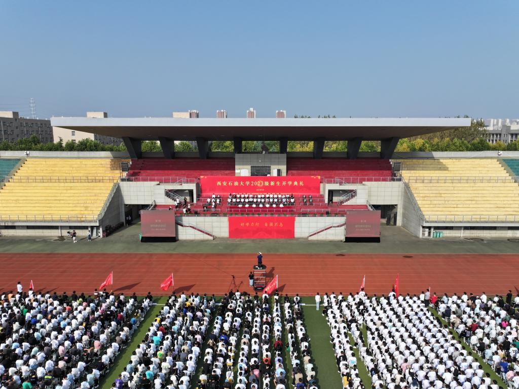 校长李天太在开学典礼上以《以青春韶华书写奋斗篇章》为题致辞。他首先代表学校全体师生员工向来自全国31个省(区、市)及港澳台地区的4613名本科生,来自508所高校的1793名硕士研究生、26名博士研究生,以及来自54个国家的696名留学生同学,表示热烈的欢迎和衷心的祝贺。李天太谈到,学校创始于1951年,已走过72年的风雨沧桑。学校72年的办学历史,是一部西石大人与共和国石油工业同呼吸、共命运的发展史,是一部西石大人筚路蓝缕、开拓奋进的创业史,是一部西石大人筑梦前行、追赶超越的奋斗史。学校在建设发展中形成的“爱国奉献、艰苦奋斗、科学求实、开拓进取”办学精神,激励着一代代西石大人潜精研思,躬行践履,用实际行动诠释着教育真谛。经过历代西石大人的顽强拼搏与不懈努力,学校已成为我国石油石化工业和西部地区重要的人才培养基地和科技研发基地,并于2022年入选国家“十四五教育强国推进工程”建设高校,“学在西石大,奠基人生路”的美誉已响遍西部地区和祖国各地。