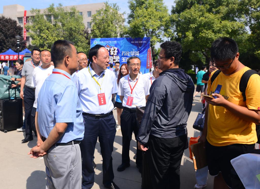 校党委书记赛云秀、校长李天太、校党委副书记张木、副校长程永清、总会计师樊晓民等党政领导亲临现场看望2023级新生及家长,并慰问迎新工作人员。