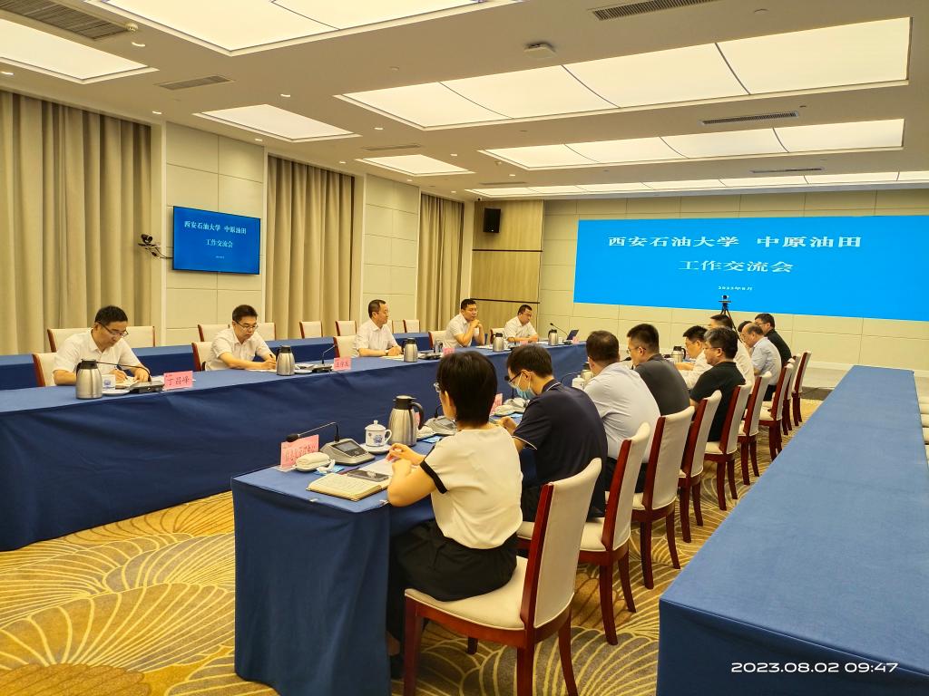 走访期间,张荣军一行分别与南阳二机石油装备集团股份有限公司董事长、党委书记杨汉立,董事张勇,总经理苏攀甫,副总经理张益民,人力资源与战略发展部部长郭姝驿;中国石化河南油田分公司副总经理王良军,党委组织部(人力资源部)人力资源管理高级专家魏建新;中国石化中原油田分公司副总经理李中超,副总政工师、党委组织部(人力资源部)经理陈东升;中国石化中原石油化工有限责任公司党委副书记、纪委书记、工会主席、监事会主席王攀,董事会秘书、综合管理部(党委办公室)主任郭永立,党委组织部(人力资源部)经理郭伟;中国石油天然气第一建设有限公司总经理、党委副书记曹阳,党委副书记、纪委书记、工会主席齐德辉,副总经理刘伟,总经理助理、人力资源部(党委组织部)经理刘明国,总经理助理、工程管理中心主任杨兴武,副总工程师薛防震等领导及相关部门负责人进行了校企合作座谈交流。