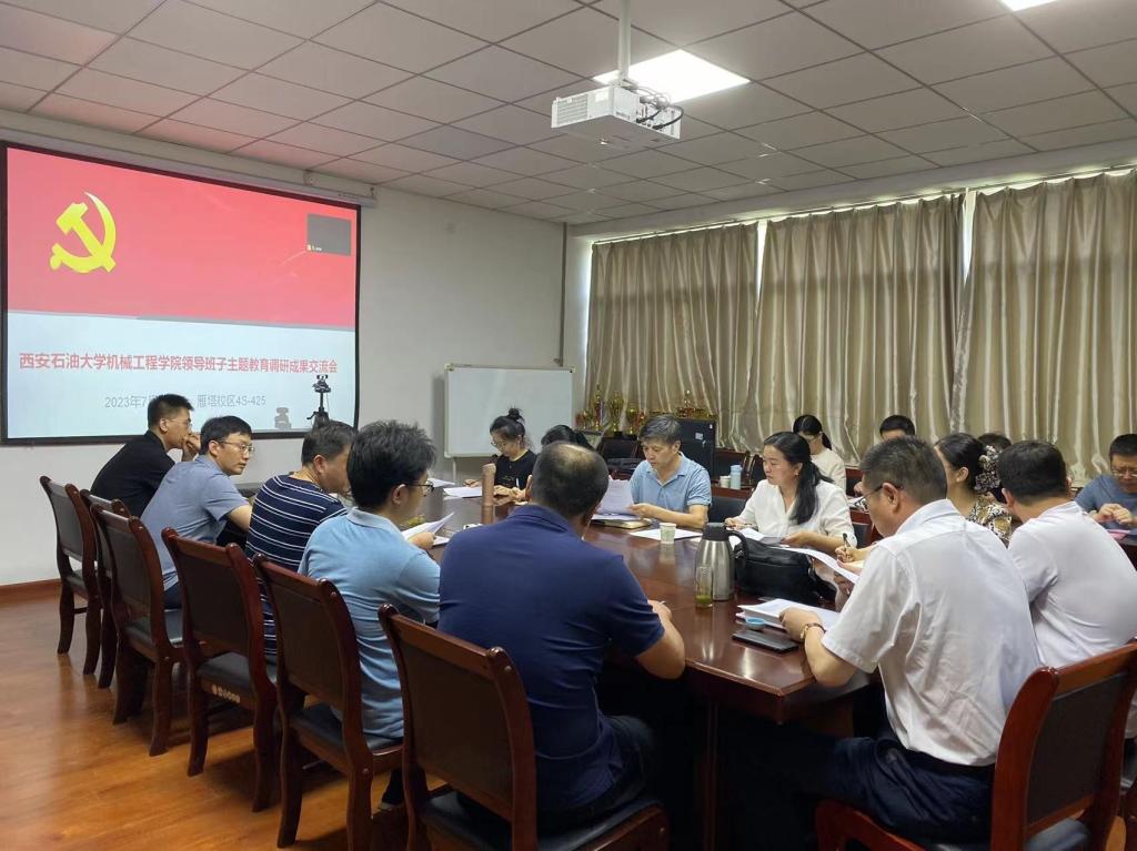 按照学校《关于召开院(系)领导班子主题教育调研成果交流会的通知》(西石大教组办〔2023〕11号)要求,7月19日下午,机械工程学院在雁塔校区4号实验楼425会议室召开了领导班子主题教育调研成果交流会。副校长杨战社、教师工作部部长武晓朦到会指导。会议由学院党委书记蔡建文主持,学院领导班子、各教工党支部书记、各系主任、科级干部、教授和青年教师代表列席会议。