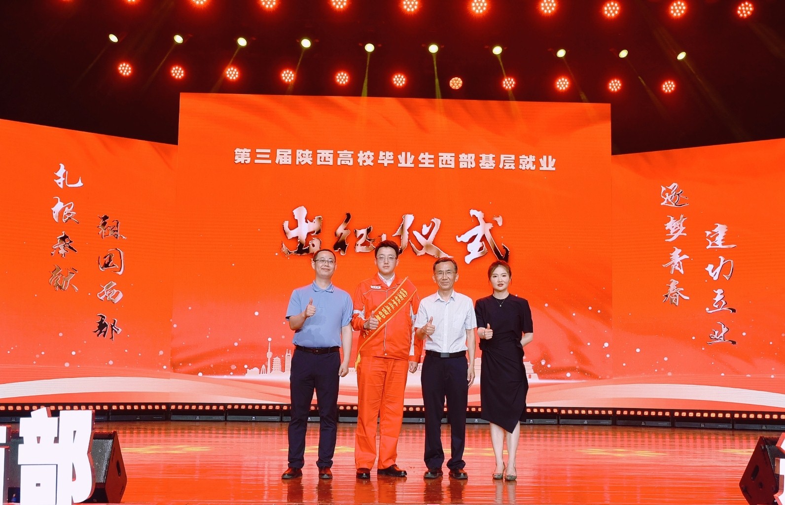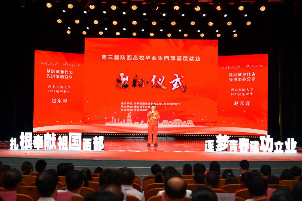 为积极响应国家鼓励毕业生到西部、到基层、到祖国最需要的地方建功立业,引导毕业生将个人理想与国家发展需要紧密结合,着力发挥陕西服务“西部大开发”的人才优势,7月8日晚,第三届陕西高校毕业生西部基层就业出征仪式在西安电子科技大学举行。陕西省委教育工委书记刘建林为赴西部基层就业的毕业生代表们授旗,教育部学生服务与素质发展中心党委副书记、纪委书记、副主任杨大研和陕西省委教育工委副书记、省教育厅厅长王树声出席并讲话。beat365党委副书记张木及石油工程学院2021届硕士毕业生赵东睿受邀现场参加活动。