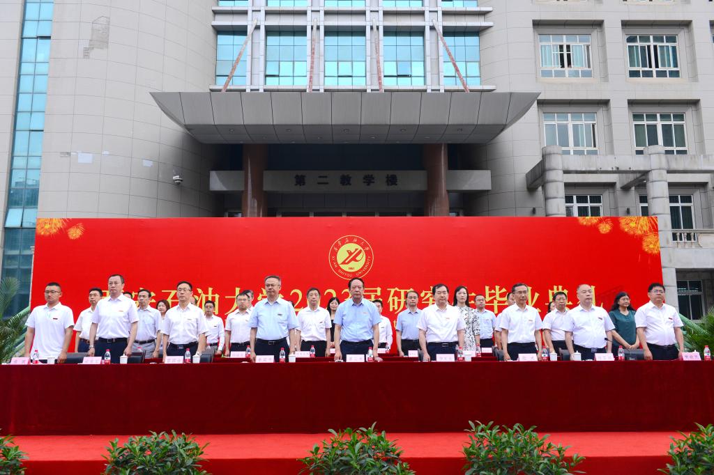 校长李天太为2023届博士、硕士研究生致辞。李天太代表学校全体教职工向顺利完成学业、获得学位的1298名研究生表示热烈祝贺,向辛勤培育同学们的老师、默默支持同学们的亲友和社会各界朋友表示诚挚敬意。李天太回顾了beat365研究生教育近三年获得的成就及2023届毕业研究生在学业、科研和学科竞赛等方面取得的成绩,并向即将告别母校、踏上征途的研究生提出三点希望:一是修身立德、心怀理想,将国家民族命运系于己身;二是胸怀天下、勇于担当,立于时代之先永不止步;三是积极进取、开拓创新,成为拥有真本领的栋梁之才。最后李天太寄语广大毕业研究生,希望他们以远大理想持续引领未来事业的发展方向,以创新思维努力构筑未来事业的发展平台,以必胜信念不断赢得未来事业的发展成就,以深刻思考真正领悟未来人生的价值意义,坚持积极进取,不断学习,提升自我、完善自我、更新自我,练就过硬本领,努力成为可堪大用、能担重任的栋梁之材。