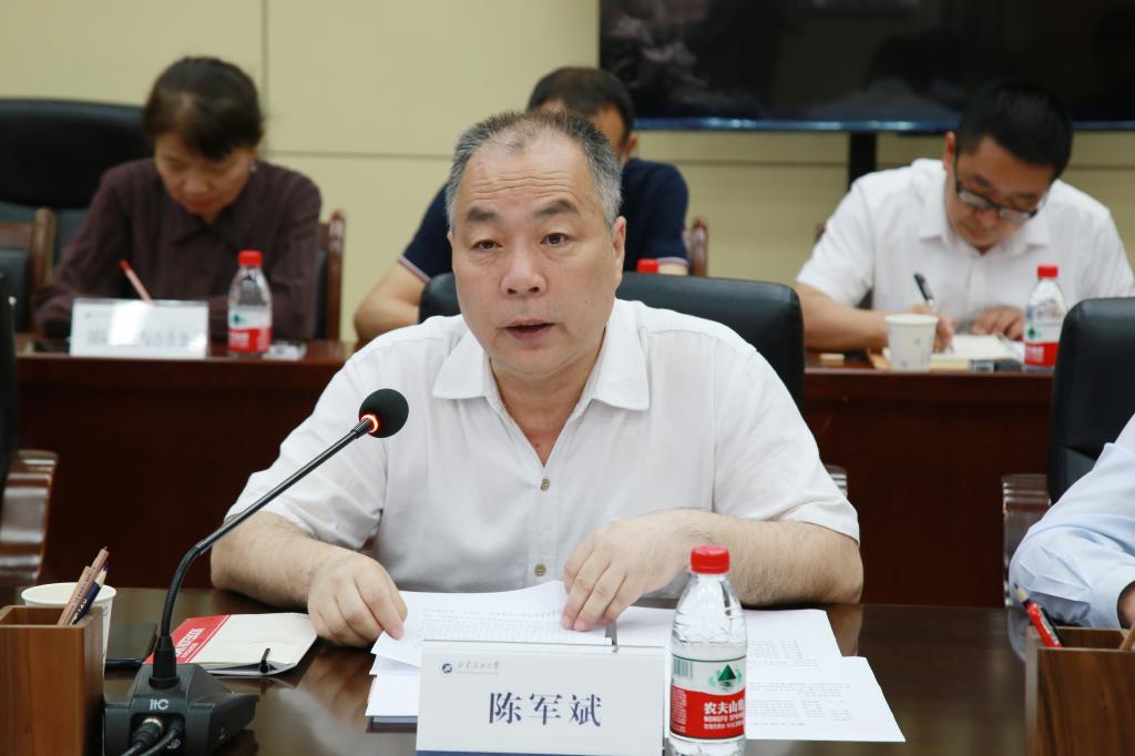 副校长陈军斌向专家组介绍了学校发展历程,围绕“加快一流大学和一流学科建设,实现高等教育内涵式发展”战略部署,简要介绍了学校自2018年以来“双一流”建设取得的各项成效。
