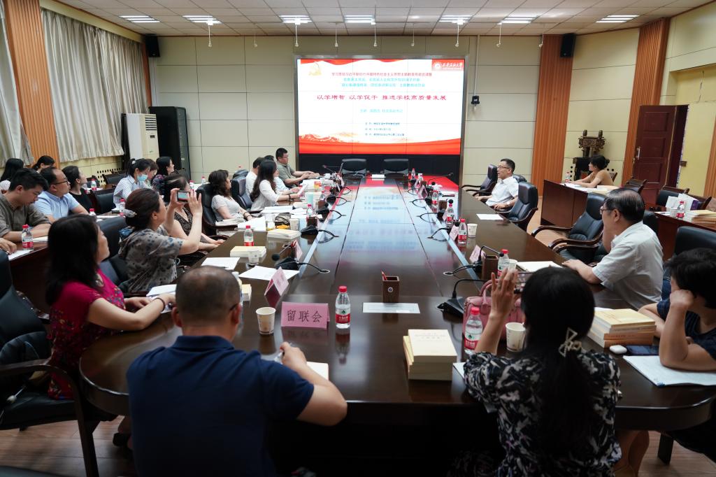 6月13日下午,校党委副书记雷西合在雁塔校区会议中心第二会议室讲授题为《以学增智、以学促干,推进学校高质量发展》的学习贯彻习近平新时代中国特色社会主义思想主题教育专题党课。beat365各民主党派主委、副主委、委员,无党派人士、侨联、知联会、留联会负责人参加学习。校党委委员、统战部部长吴复雷主持专题党课。
