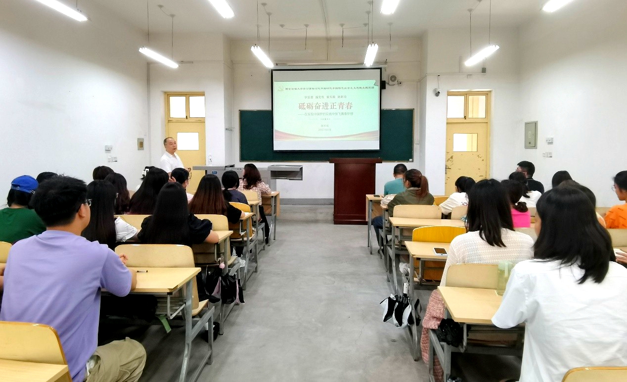 陈军斌从“学习贯彻习近平新时代中国特色社会主义思想主题教育的重大意义和目标要求”“习近平新时代中国特色社会主义思想的主要内容”“教育、科技、人才是全面建设社会主义现代化国家的基础性、战略性支撑”“在实现中国梦的实践中放飞青春梦想”四个方面展开讲授。系统讲述了主题教育“学思想、强党性、重实践、建新功”的总要求,指出要通过强化理论学习、深入调查研究、推动高质量发展、抓好检视整改这些重要举措,努力在以学铸魂、以学增智、以学正风、以学促干方面取得成效。并以“十个明确”“十四个坚持”“十三个方面成就”讲解了习近平新时代中国特色社会主义思想的主要内容,以党的二十大提出的“六个必须坚持”阐述了习近平新时代中国特色社会主义思想的世界观、方法论和贯穿其中的立场观点方法。他强调,我们党在教育、科技、人才方面做出了一系列的战略规划,习近平总书记高度重视教育,将立德树人作为教育的根本任务,提出教育、科技、人才是全面建设社会主义现代化国家的基础性、战略性支撑。