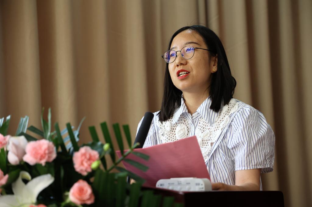 2023级过程装备与控制工程专业徐莹代表新生发言,她表示身为孩子的母亲,希望能以身作则,为孩子树立好榜样。她号召全体新生同学,在今后的学习过程中,踏实勤奋、学以致用、弥补短板,积累专业知识,实现人生价值。