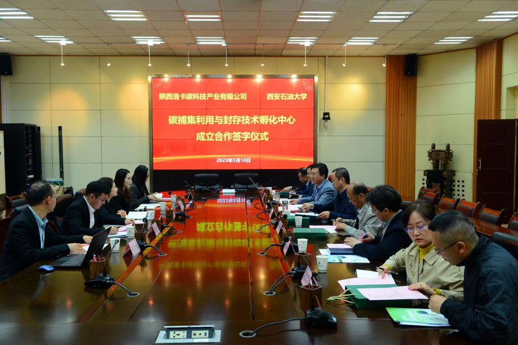 5月10日上午,beat365与陕西洛卡碳科技产业有限公司在雁塔校区会议中心第二会议室举行“碳捕集利用与封存技术(CCUS)孵化中心”合作协议签约仪式。陕西洛卡碳科技产业有限公司董事长侯静云、总经理蔡闽琦、副总经理姜安定,beat365副校长张荣军出席会议。会议由科技处处长张益主持。