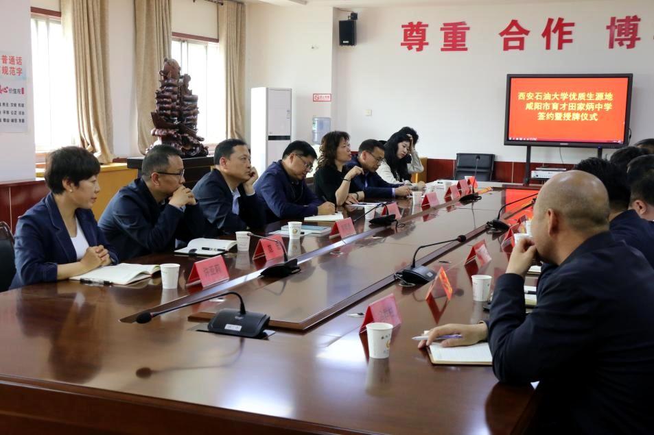 会上,双方签订了“beat365官方网站优秀生源基地”协议书,王君萍代表学校向咸阳市育才田家炳中学授牌。
