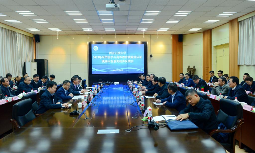 4月25日上午,学校召开来华留学生高等教育质量再认证现场审查初步意见反馈会。栾凤池代表认证工作专家组反馈了现场审查初步意见。初步反馈意见指出,学校将来华留学生教育工作列为“一把手”工程,并整体纳入学校国际化工作。一是学校高度重视来华留学生教育,形成了上下“一盘棋”工作机制。二是学校来华留学生教育特色鲜明,服务国家战略,注重特色化、差异化发展,打造形成了石油天然气工程来华留学生人才培养基地。三是工作突出、成效显著,获批全国来华留学示范基地建设院校,来华留学教育成果获得国家级教学成果二等奖和陕西省教学成果特等奖,2门课程获得全国来华留学英文授课品牌课程。四是勇于开拓创新,首创“3352”来华留学生人才培养模式。同时,反馈意见指出了学校来华留学生教育发展的问题和建议。意见指出,学校一是要进一步加强顶层设计,服务经济社会发展;二是要强化师资队伍,优化学科布局;三是要适度扩大规模,提高培养层次。希望学校继续聚焦“一带一路”,提高生源质量,规范教学管理,培养更多知华友华人才。