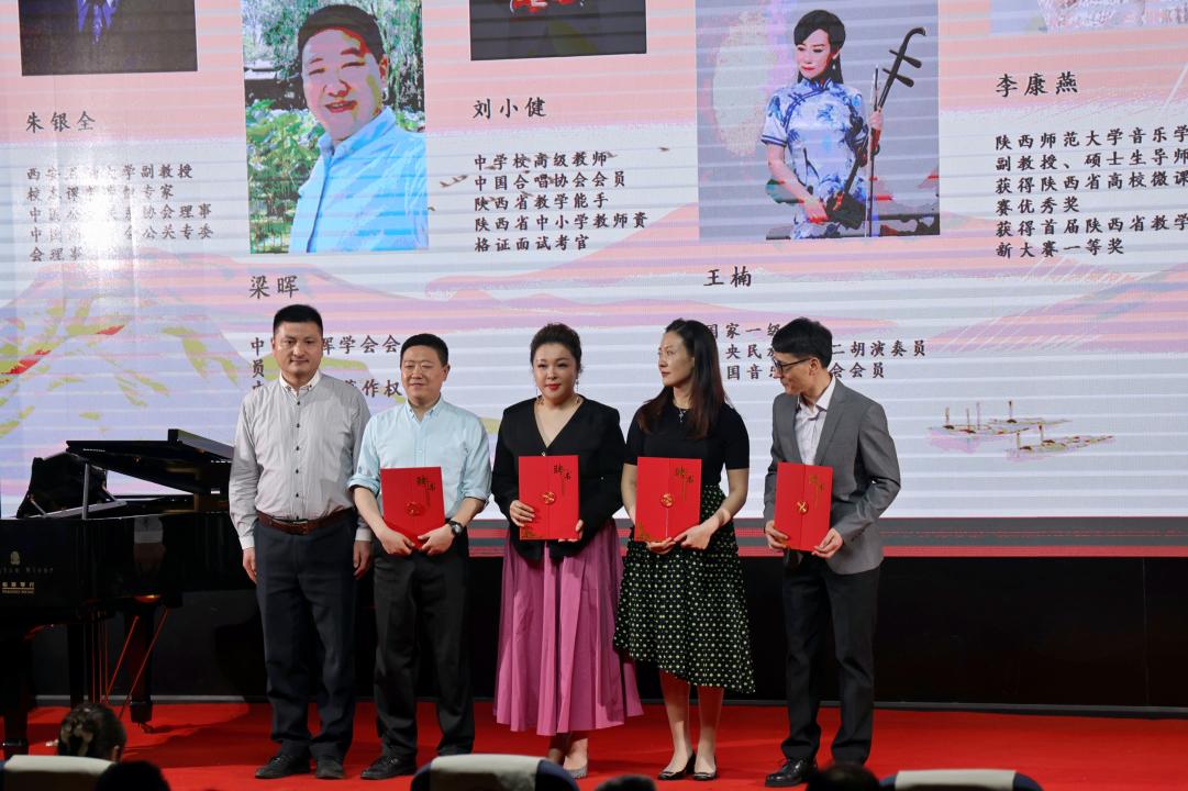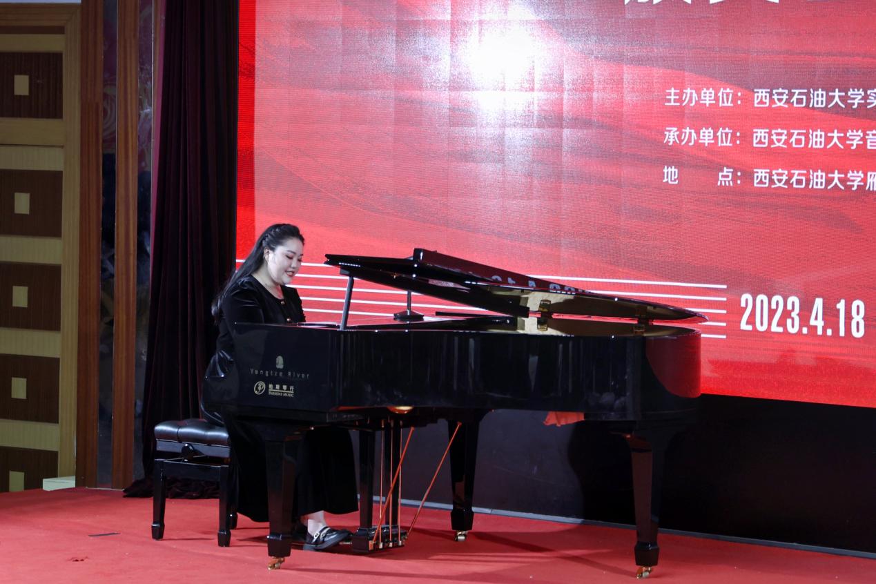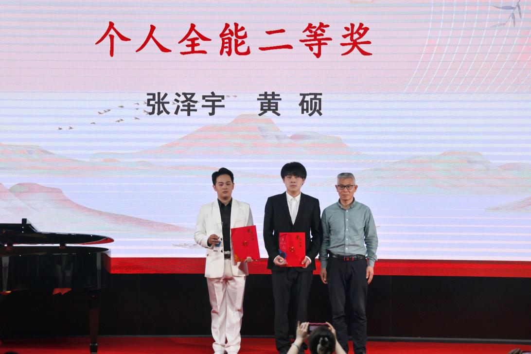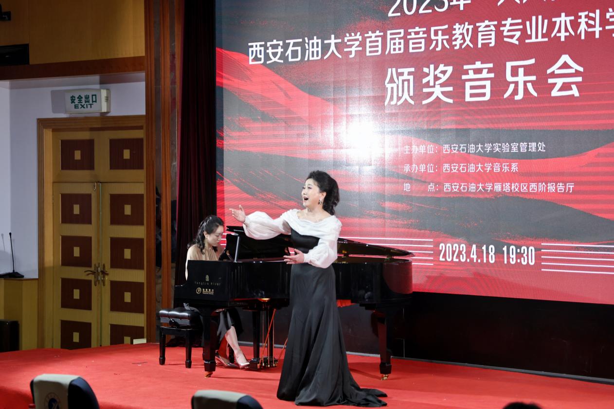 颁奖晚会由本次获奖的部分学生和评委教师代表共同呈现了一场别开生面的演出。舞蹈单项奖获得者胡婕雯同学带来的舞蹈《九儿》拉开了展演序幕。钢琴正谱伴奏单项奖获得者吕梦同学和演唱嘉宾樊长春同学共同演绎了经典声乐作品《秋水长天》,自弹自唱单项奖获得者张冰同学带来《同一首歌》,展现了较强的钢琴演奏及声乐演唱能力。器乐单项奖获得者张泽宇同学一曲二胡《秦腔主题随想曲》激起观众内心的波澜。系特聘专家陕西师范大学音乐学院雷倩副教授和西安人人艺术学校彭忠波校长分别为大家演唱《圪梁梁》和《我是一条小河》,beat365音乐系副教授寇利利演唱经典民族歌剧选段《生死与党心相连》,三位老师的精彩演唱展现了扎实的专业基本功,赢得了现场阵阵掌声与欢呼。演出的最后,全场师生齐唱《我的祖国》,表达了内心的民族自豪感和爱国热情,把整场晚会的气氛推向了高潮。