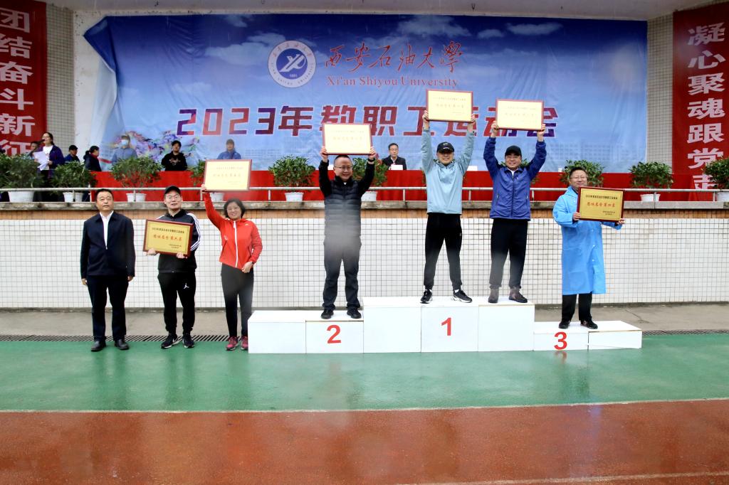 人文学院工会代表队、机关七工会代表队、石油工程学院工会代表队、机关一工会代表队、电子工程学院工会代表队、机关八工会代表队荣获运动会“精神文明先进集体”称号,雷西合为获奖单位颁奖。