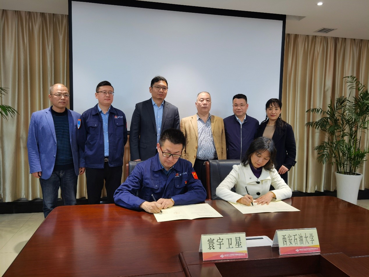 白一炜向陈军斌一行介绍了西安寰宇卫星测控与数据应用有限公司的概况,曹志远就双方进一步在人才培养和科学研究等方面进行合作交流作了发言。