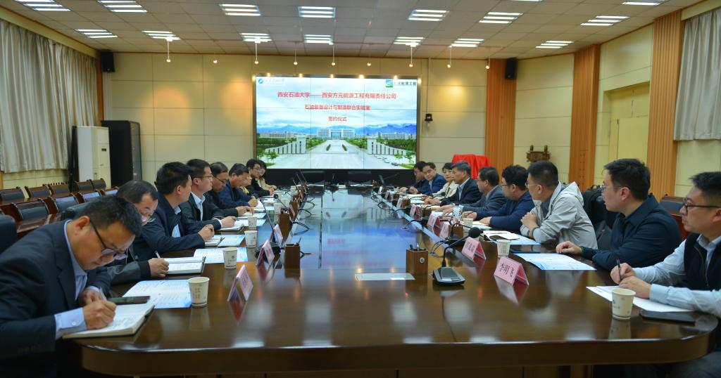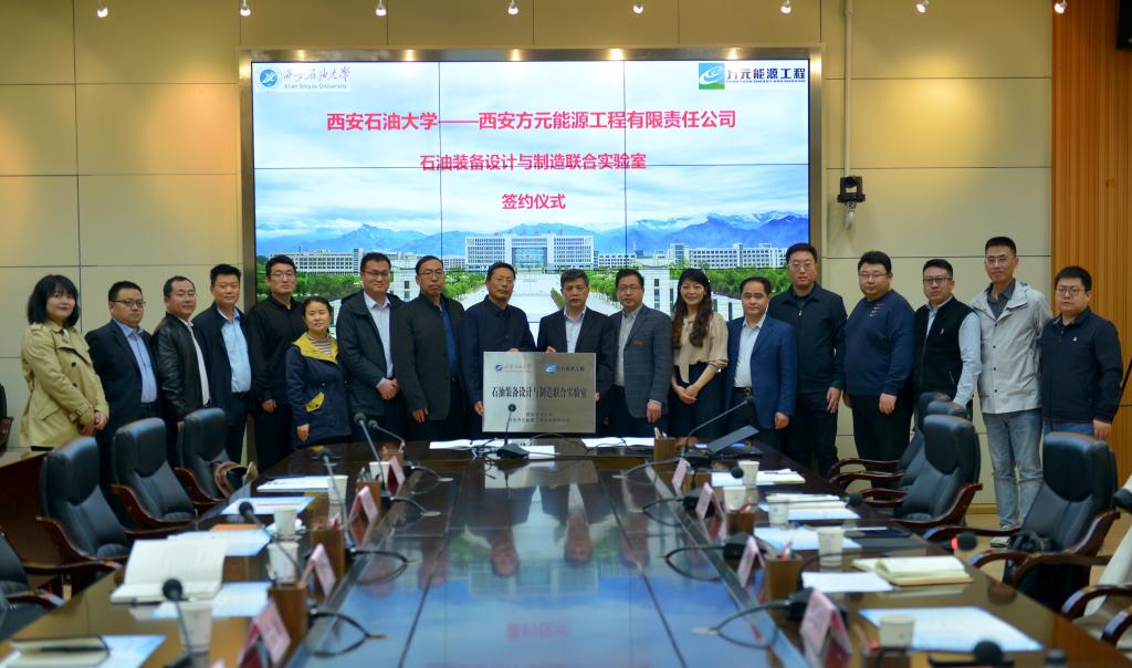 为深入贯彻落实教育部、省教育厅关于“访企拓岗促就业”专项行动工作的部署,机械工程学院化机系系主任程嘉瑞、机械系系主任李万钟、智能机械系副主任魏文澜等多名教师在前期多次走访西安方元能源工程有限责任公司,经双方研究,并报请地方政府和学校相关部门批示,决定共建石油装备设计与制造联合实验室。