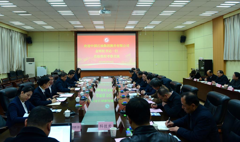 3月20日上午,中国石油集团测井有限公司党委书记、执行董事金明权带队来校开展合作交流。交流座谈会在雁塔校区会议中心第一会议室召开,校党政领导赛云秀、李天太、张木、杨战社、张荣军出席会议。会议由校长李天太主持。