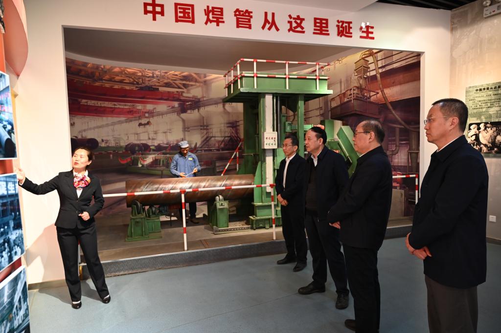 舒高新、张斌,张福对赛云秀一行表示热烈欢迎,并分别陪同参观了宝鸡石油钢管有限责任公司展馆,宝鸡石油机械有限责任公司海洋石油装备分公司、钢结构分公司、国家研究中心和公司厂史展厅。公司负责人分别从公司产品体系、产业集群、制造实力、市场开拓、科技创新、数字化发展等方面作了企业情况介绍,并从人才培养、合作项目开展、关键核心技术等方面交流了校企合作进展。