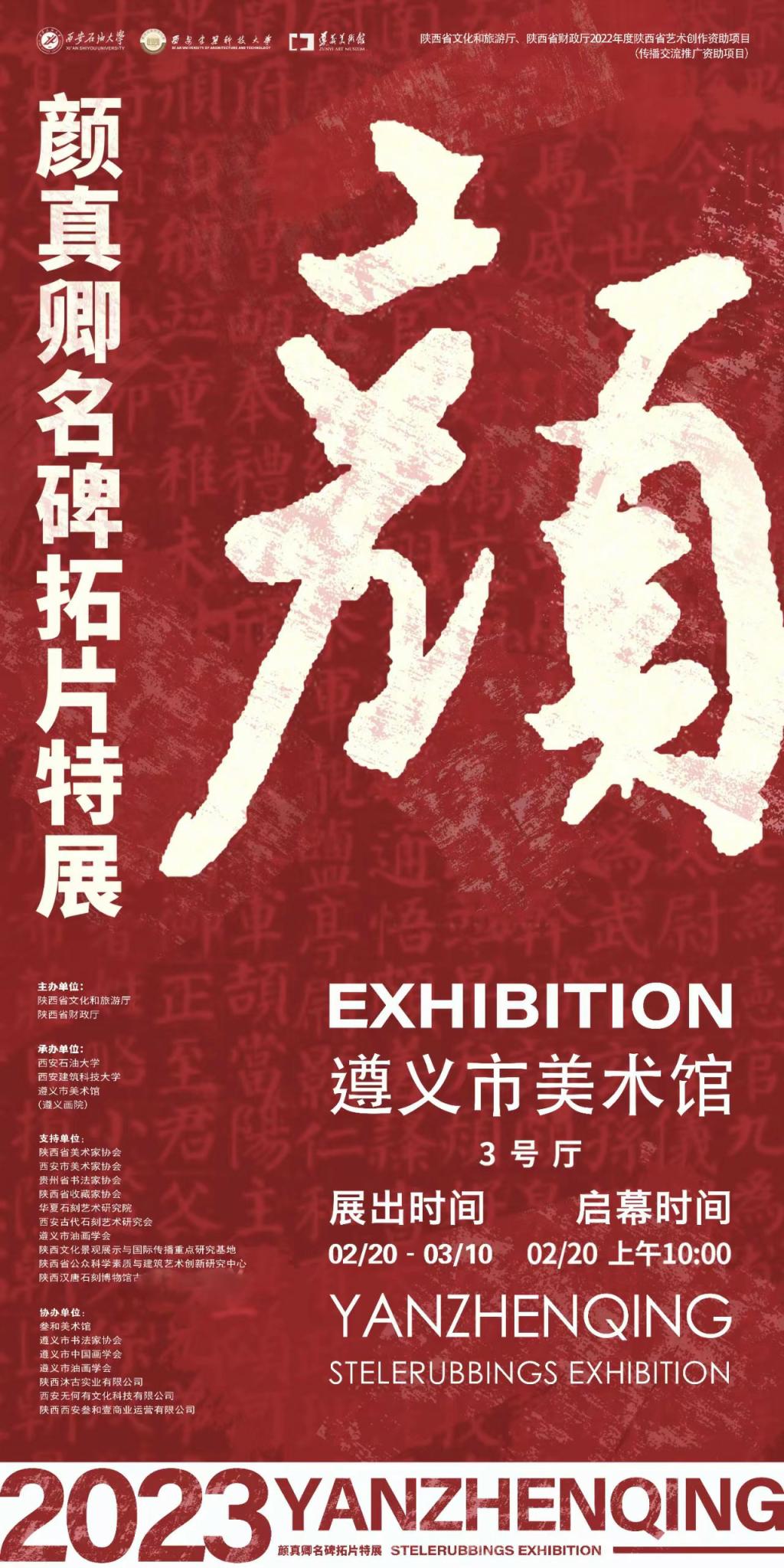 2月20日上午,由陕西省文化和旅游厅、陕西省财政厅主办,beat365官方网站、遵义市美术馆(遵义画院)联合承办的“书以载道 文以铸魂——颜真卿名碑拓片特展”在遵义市美术馆(遵义画院)开幕。