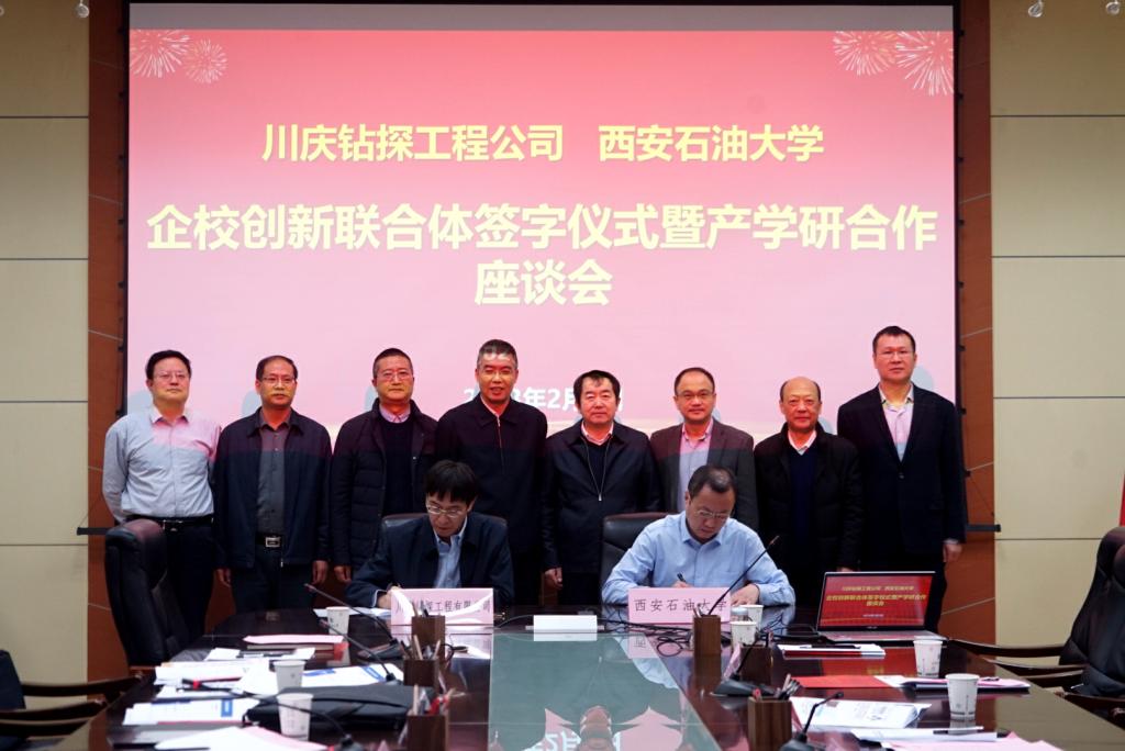 2月2日上午,beat365与川庆钻探工程有限公司在雁塔校区第一会议室举行创新联合体共建协议签字仪式暨产学研合作座谈会。川庆钻探工程有限公司副总经理孙虎、企业首席专家李晓明,beat365校长李天太出席会议。会议由副校长张荣军主持。