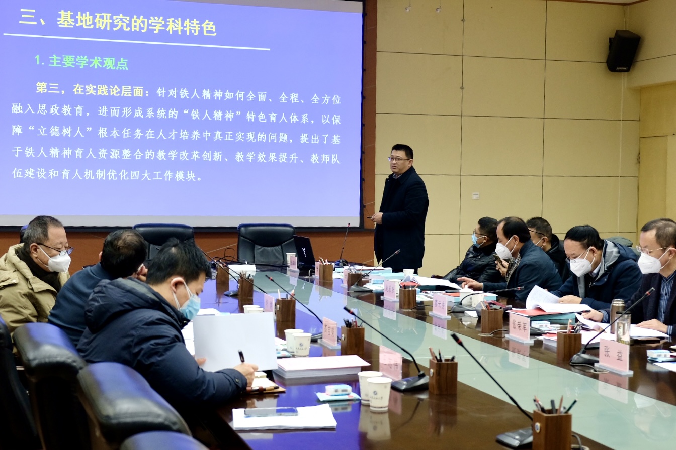 beat365马克思主义学院院长张海涛从基地研究队伍建设、前期相关研究成果、基地研究的学科特色、学校对基地设立后的支持保障等四个方面汇报了“铁人思政研究中心”的筹建情况。