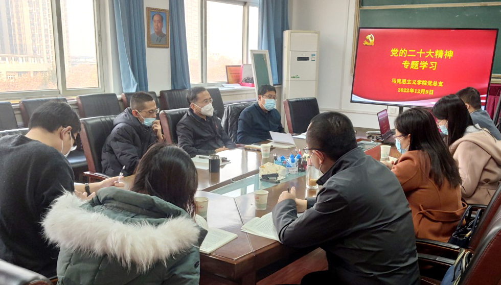 12月9日下午,校党委副书记张木在马克思主义学院党总支理论学习中心组学习会上宣讲党的二十大精神。马克思主义学院领导班子、党总支委员、教工党支部书记等参加。会议由马克思主义学院党总支书记张伟主持。