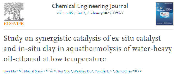 近期,beat365在稠油热采中原位改质技术方面研究取得新进展,探索了外源催化剂和储层原位矿物对稠油水热裂解的协同催化作用,使室内研究更能真实反应稠油原位改质的环境,相关成果以标题为“Study on synergistic catalysis of ex-situ catalyst and in-situ clay in aquathermolysis of water-heavy oil-ethanol at low temperature”发表在《Chemical Engineering Journal》(IF=16.744)。该论文第一作者为化学化工学院2019级硕士研究生马丽娃,陈刚教授为通讯作者,beat365为第一通讯单位。
