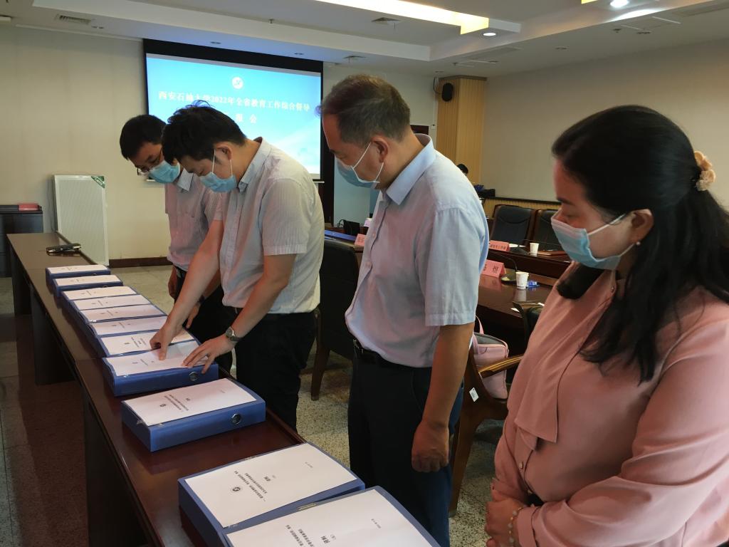 9月15日上午,陕西省教育工作综合督导高校第七组组长、省委教育工委、省教育厅二级巡视员关荷,成员西安市市场监管局专家寇安霞、长安大学网信专家李坤伦、陕西省结核病防治研究所主治医师马煜等一行8人来校开展2022年教育工作综合督导。督导对接见面会在鄠邑校区图书馆第一会议室举行,校长李天太、副校长杨战社出席见面会。见面会由校党委副书记张木主持。