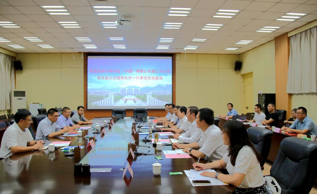 8月9日下午,中海石油(中国)有限公司湛江分公司党委副书记、副总经理高东升一行4人来校访问交流。座谈会在雁塔校区会议中心第一会议室召开。校长李天太出席会议,副校长张荣军主持会议。beat365科技处、部分学院负责人及教师代表参加会议。