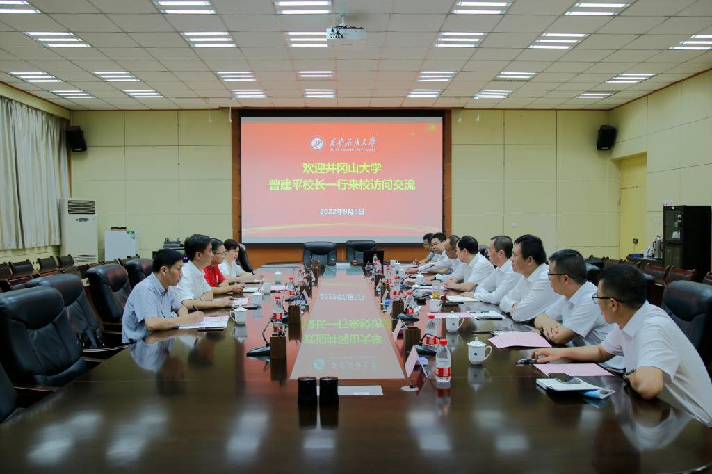 8月5日上午,井冈山大学党委副书记、校长曾建平一行4人来校调研走访,座谈会在雁塔校区会议中心第一会议室召开。校长李天太、副校长张荣军出席会议,党政办公室、科技处、信息化建设与管理处(网络和数据中心)、图书馆负责人参加了会议。会议由张荣军主持。