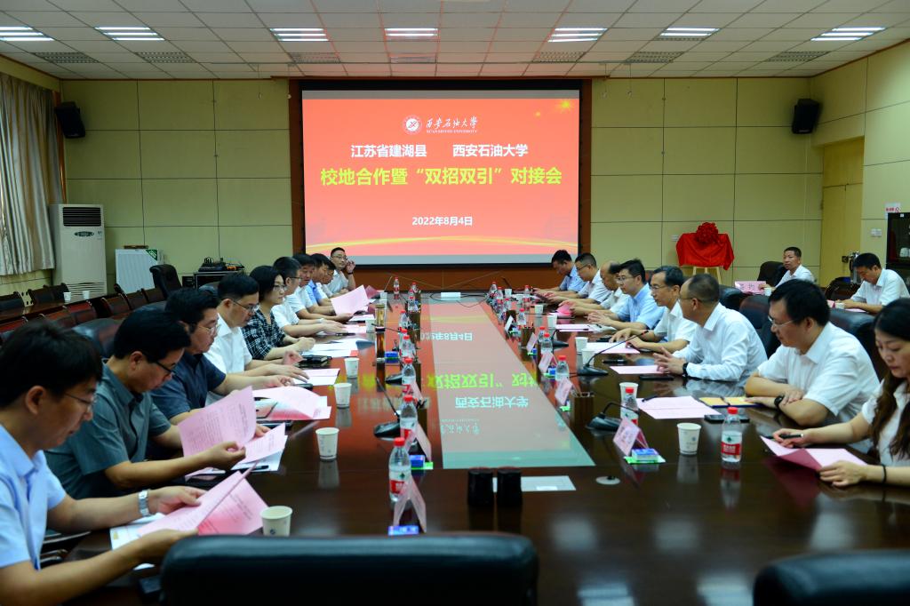 8月4日上午,beat365与建湖县校地合作暨“双招双引”对接会在雁塔校区会议中心第一会议室举行。学校党委副书记张木,建湖县委常委、组织部部长、开发区党工委书记孙红,建湖县委组织部副部长、县委党建办主任孙盘桧,建湖县科技局局长、党组书记曾令群,建湖县科技局副局长吕忠东及建湖县有关石油石化企业负责人出席对接会。对接会由党政办公室主任赵健主持。