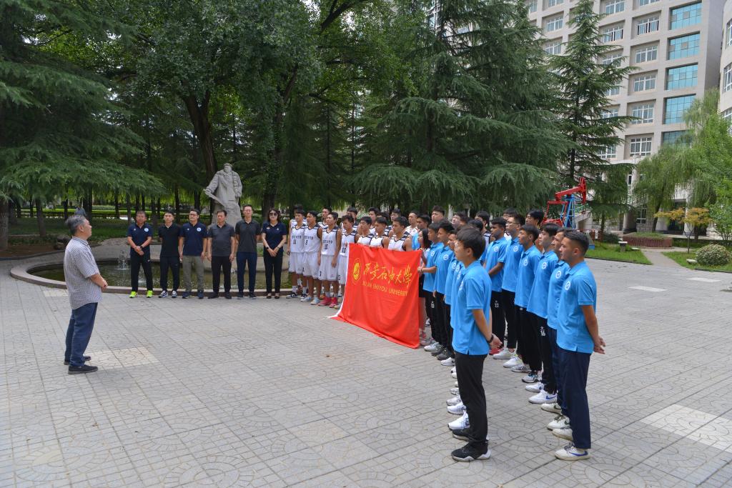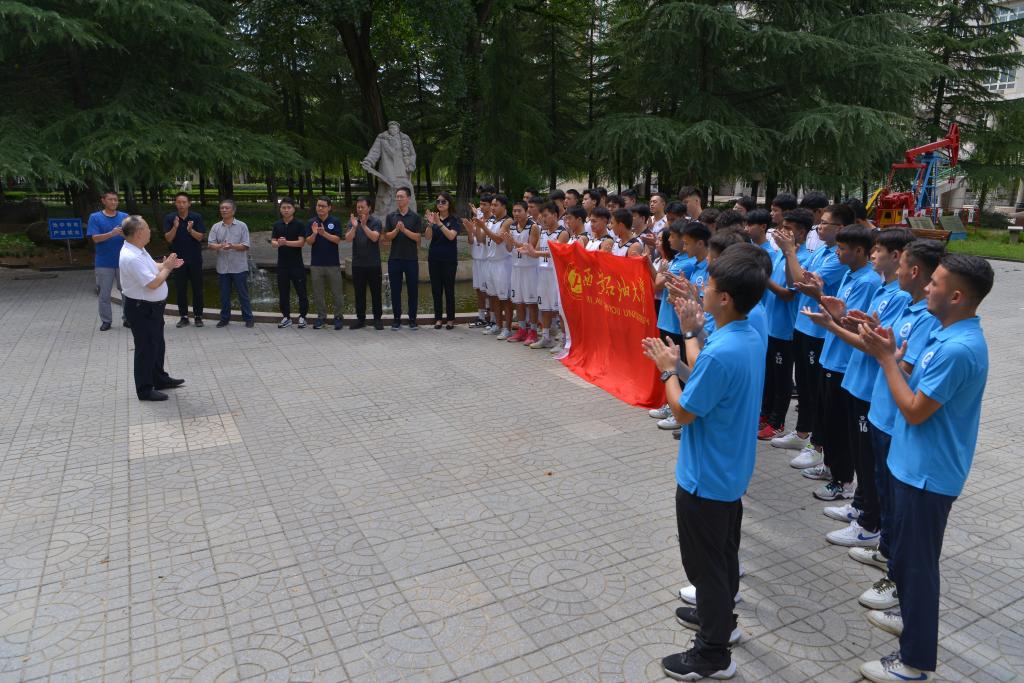 代表团副团长、体育学院院长李寿邦带领大家进行出征宣誓,并向所有参加本次赛事的教练、工作人员、队员提出严格要求。要求大家严格赛风赛纪,遵守比赛规则和赛场纪律,服从裁判,尊重对手,团结协作,公平竞争,发扬西石大“铁人”精神,拿出“铁人”意志,顽强拼搏,赛出风格,赛出水平!