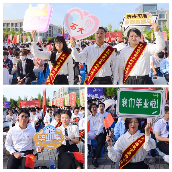 李天太为2022届本科毕业生致辞。他代表学校全体教职员工,向顺利完成学业的4173名中外本科毕业生表示热烈祝贺,向辛勤养育同学们的父母、悉心指导同学们的老师、默默支持同学们的亲朋好友表示衷心感谢。李校长回顾了2022届毕业生四年的精彩时光,以“爱国力行,不负青春”为题送全体毕业生四句话,希望同学们永葆“四颗心”:一是希望同学们永葆为国为民的赤子心,在使命担当中坚定理想;二是希望同学们永永葆自立自强的自信心,在追求卓越中超越自我;三是希望同学们永葆锲而不舍的进取心,在脚踏实地中成就事业;四是希望同学们永葆心存善念的感恩心,在忘我无畏中默默奉献。