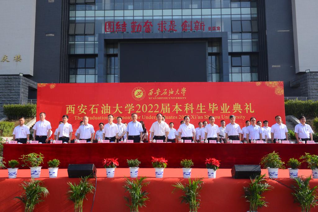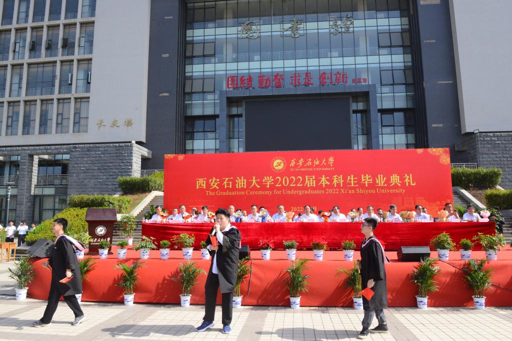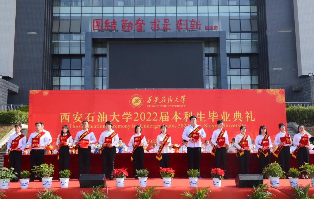 副校长陈军斌宣读了《beat365官方网站关于2022届本科学生准予毕业、颁发毕业证和授予学士学位的决定》,副校长杨战社宣读了《beat365官方网站关于表彰2022届优秀毕业生的决定》,校党委副书记雷西合宣读了《beat365官方网站校友总会关于聘任2022届年级校友理事的决定》。与会校领导为志愿服务西部计划、荣获优秀毕业生荣誉称号的学生代表颁发了荣誉证书并赠送了“原油”印章纪念品,为年级理事代表颁发了聘任证书和纪念品。