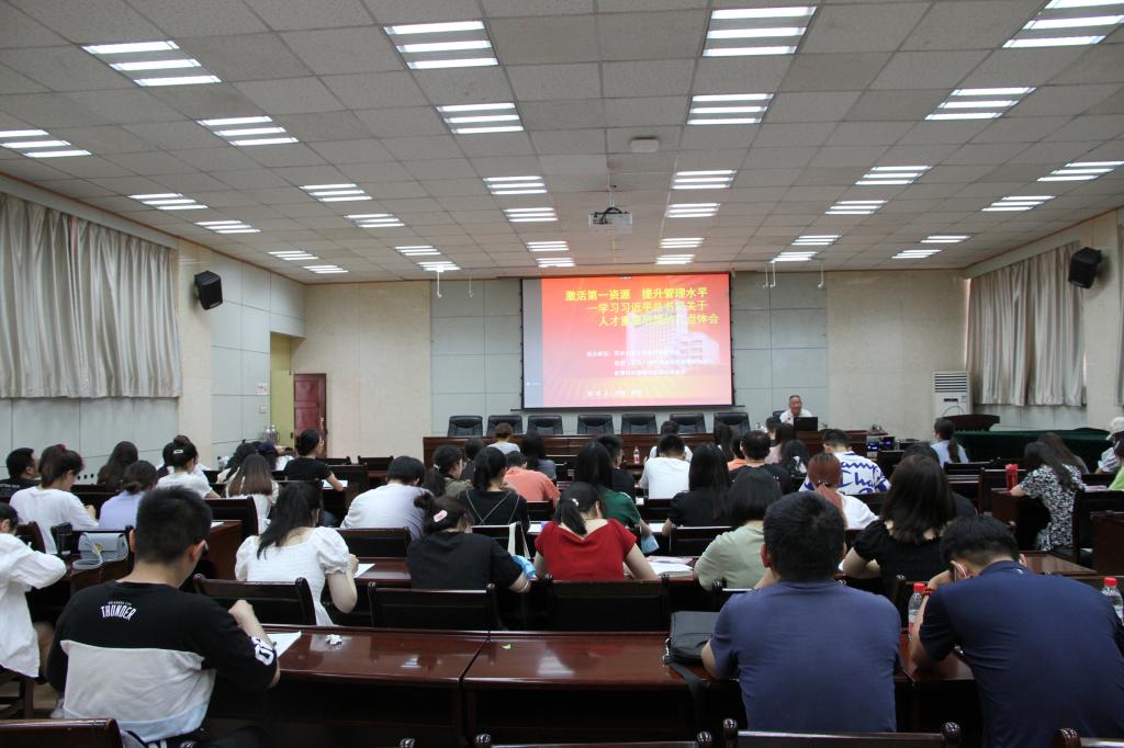 邓理在报告中围绕学习习近平总书记关于人才重要思想,从激活第一资源提升管理水平的角度,结合党和政府有关人才的方针政策,对认识人才定位,践行人事制度,把握选人用人原则,用好尊重人才钥匙以及实现人人皆可成才、人人尽展其才等五个方面的内容进行详细解读,鼓励青年学子与新时代同行,提高站位、坚定信心,刻苦学习、不辱使命,努力成为可堪大用、能担重任的栋梁之才。