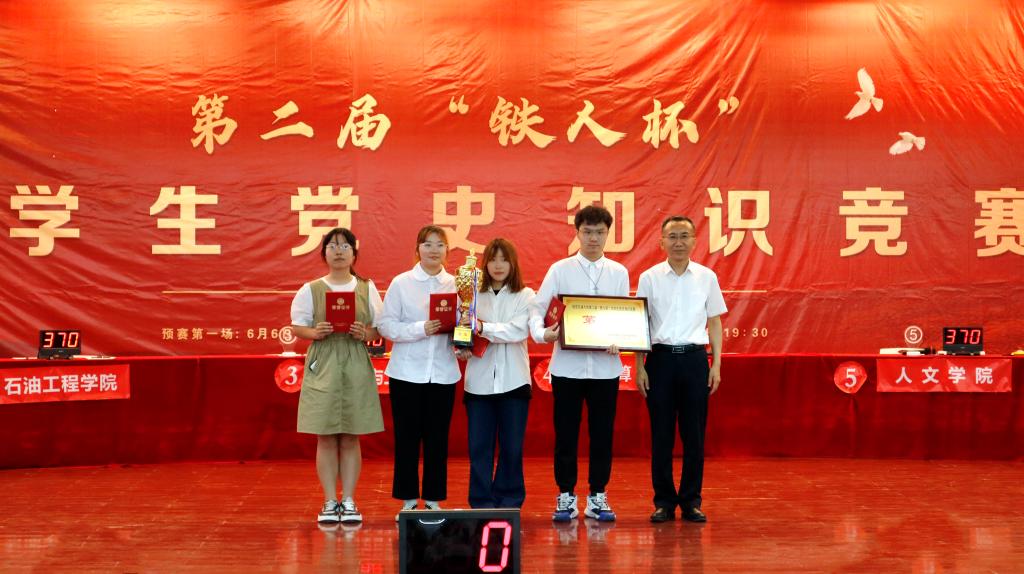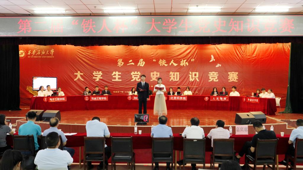 6月13日晚,由马克思主义学院、教务处主办,组织部、宣传部、学工部、校团委协办的第二届“铁人杯”大学生党史知识竞赛决赛在鄠邑校区腾辉大学生活动中心隆重举行。校党委副书记张木出席,相关部门负责人、教师及学生代表参加本次活动。经过两场初赛,电子工程学院、石油工程学院、地球科学与工程学院、计算机学院、人文学院、外国语学院六支代表队进入决赛。