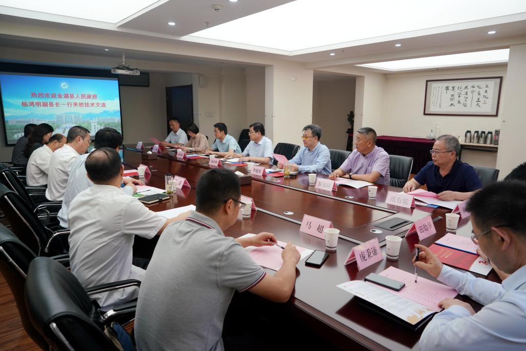 6月2日上午,江苏省淮安市金湖县人民政府杨鸿明副县长一行来校访问,beat365副校长张荣军出席会议。座谈会在明德校区第一会议室召开,学校科技处处长张益主持会议。
