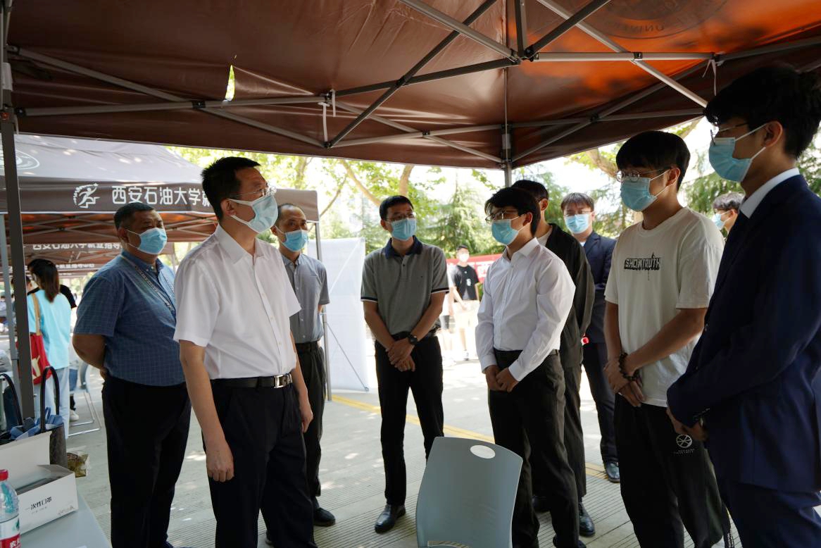 井海滨逐一走访参会单位,鼓励企业拿出更多岗位,不断加大吸纳大学毕业生就业的力度,在薪酬待遇和发展空间上对毕业生要有一定倾斜。他还与应聘毕业生亲切交谈,勉励毕业生要心怀报国之志,积极投身国家建设,为西部和陕西的经济发展贡献青春力量。同时还对beat365学生培养、学生精神风貌和本次招聘会的防疫、组织、宣传、服务等工作给予充分肯定。他指出,本次公共就业服务进校园行动是我省贯彻落实党中央、国务院、省委、省政府关于高校稳就业工作的重要举措,全省各重点企业拿出岗位积极响应参与,希望同学们抓住有利时机,及时充分就业。