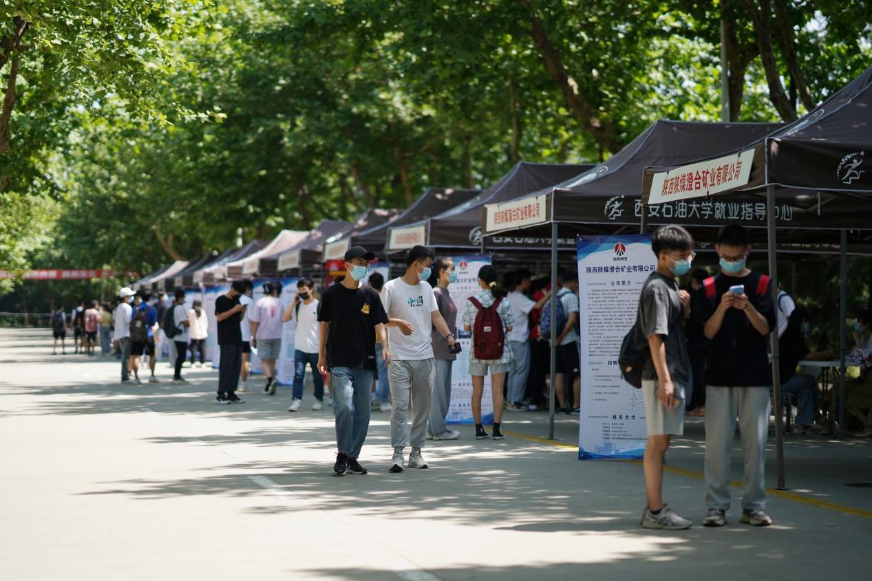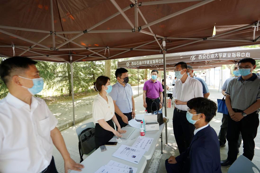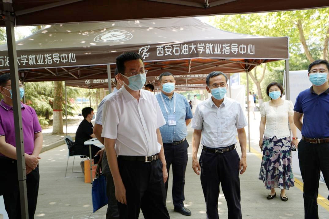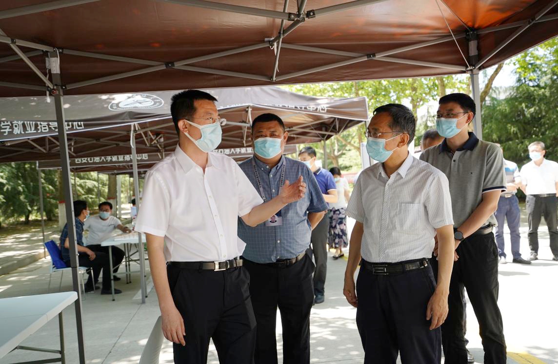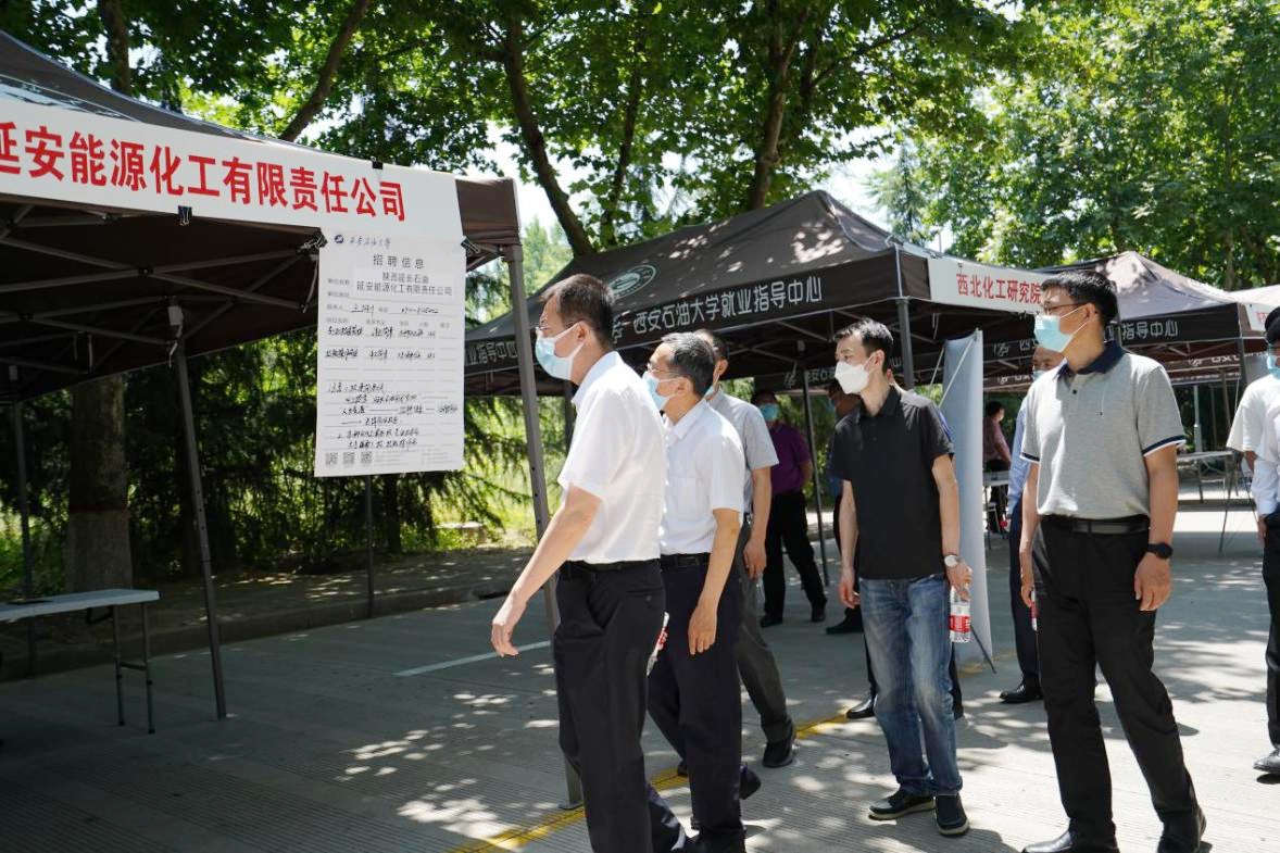 6月1日上午,由陕西省人力资源和社会保障厅、陕西省国有资产监督管理委员会、陕西广电融媒体集团主办,陕西省人才交流服务中心、beat365官方网站承办的“公共就业服务进校园——省属国企稳就业高校毕业生专项招聘会”在beat365鄠邑校区举行,陕西延长石油集团、陕煤彬长煤矿、西北有色集团713总队有限公司等18家省内重点企业参会。陕西省人力资源和社会保障厅副厅长井海滨、就业促进处处长王晓龙、陕西省人才交流服务中心毕业生部部长李阳莅临现场视察指导工作。校党委副书记张木、相关职能部门负责同志现场陪同。