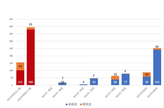 2021年,外国语学院成立指导教师团队,首次组织beat365学生参与此项赛事,积累了一定的经验。2022年,团队教师齐心协力,负责竞赛宣传动员、报名信息收集整理、校内模拟和参赛选手赛前分组训练指导工作;参赛学生积极、认真备赛。在师生的共同努力下,beat365学生在本届全国学术英语词汇竞赛中成绩斐然,在获奖等级和获奖比率方面均取得了可喜突破。获奖总人数为395人,获奖率从2021年的约10.5%提高到2022年的约34%。