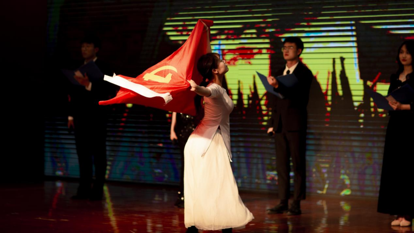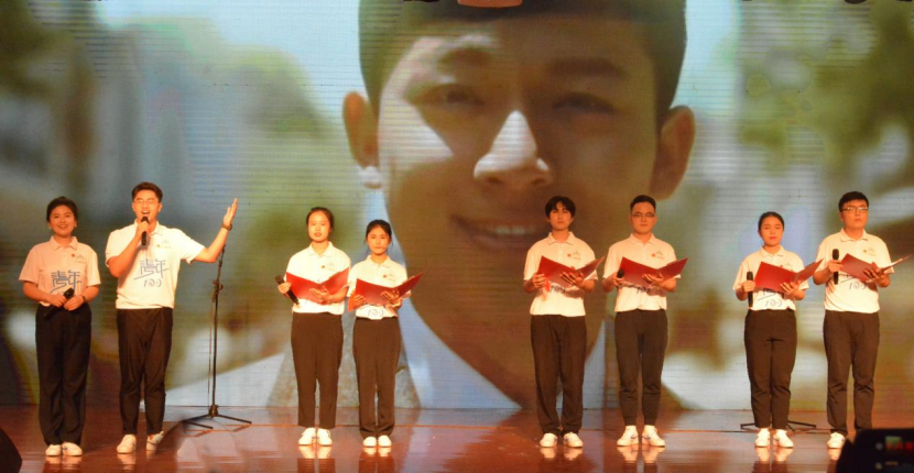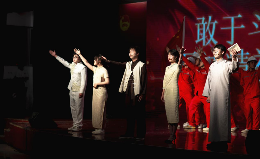 表彰大会结束后,与会人员一起观看了“不负韶华,强国有我”青春诗会。本次诗会将不同时期的爱国主义经典诗作与部分原创内容有机结合,按照时间的脉络分为“革命理想高于天”“改革建设动天地”“时代征程起宏图”三大篇章。在第一篇章,《不朽》《吹号者》等作品鲜明生动地展现出新民主主义革命时期,中国共产党和人民军队的崇高革命理想与坚定革命信念,表达出不怕牺牲、敢于胜利的无产阶级革命乐观主义精神。在第二篇章,《祖国的春风》《盛世中国》等作品集中展现了改革开放和社会主义现代化建设时期,党领导全国各族人民在中国特色社会主义建设中取得的伟大成就。在第三篇章,《石油时代赞歌》《新时代我们永远在路上》《北京冬奥颂》等作品集中展现了党的十八大以来,以习近平同志为核心的党中央领导广大青年投身全面建成小康社会、全面建设社会主义现代化国家的伟大历史进程。