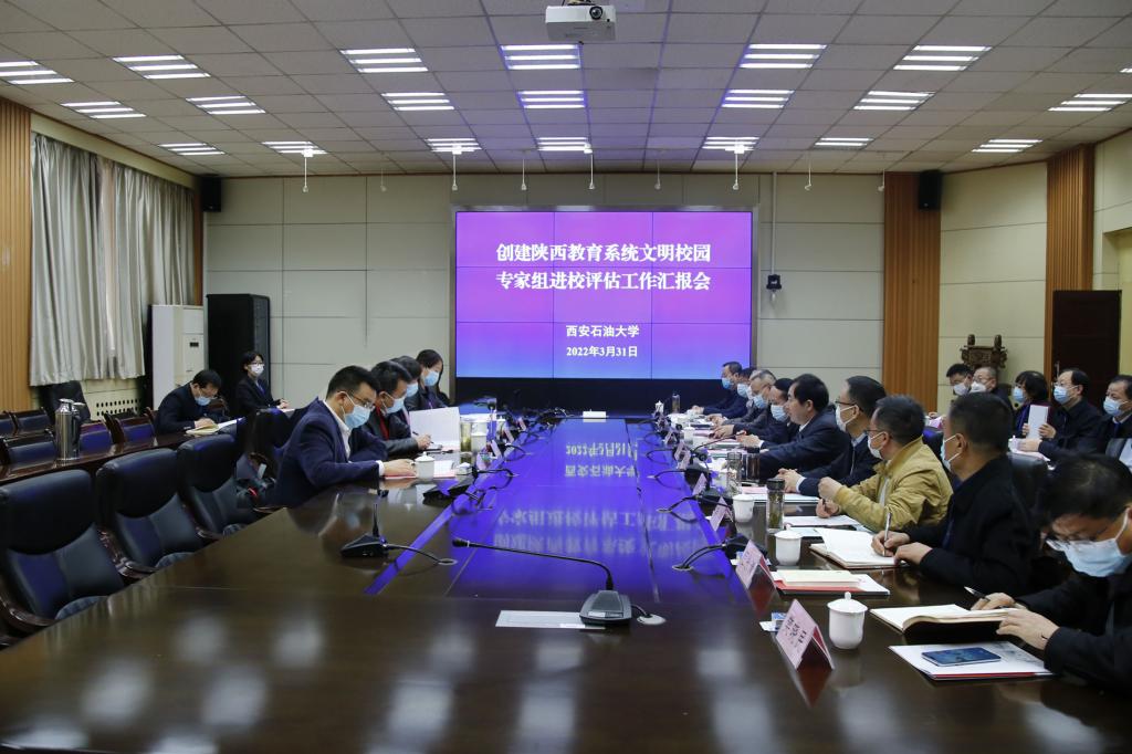 汇报会上,专家组组长樊建武介绍了评估工作安排,他表示,专家组成员在学校评估期间一定会恪尽职守、不辱使命,严格按照《陕西教育系统文明校园创建实施办法》,遵循客观、公正、促进、提高的原则,认真工作,履行好职责,做好文明校园评估工作。