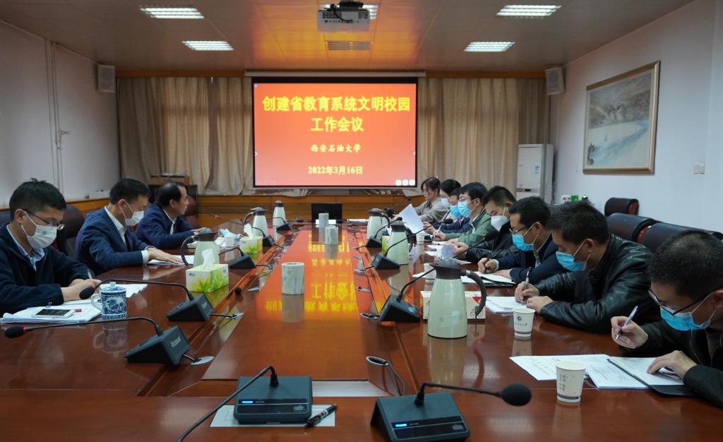 3月17日,学校在雁塔校区行政楼五楼会议室召开创建省教育系统文明校园工作会议。校党委副书记雷西合出席会议。党委宣传部常务副部长赵承胜主持会议。创建省教育系统文明校园工作专班相关人员参加会议。