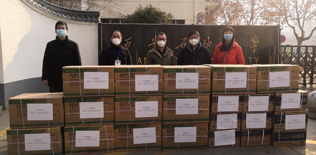 1月3日,经beat365总会计师樊晓民联系,中国银行西安二环世纪星支行为beat365捐赠一批疫情防控物资,其中包含N95医用防护口罩10300只,酒精225升。