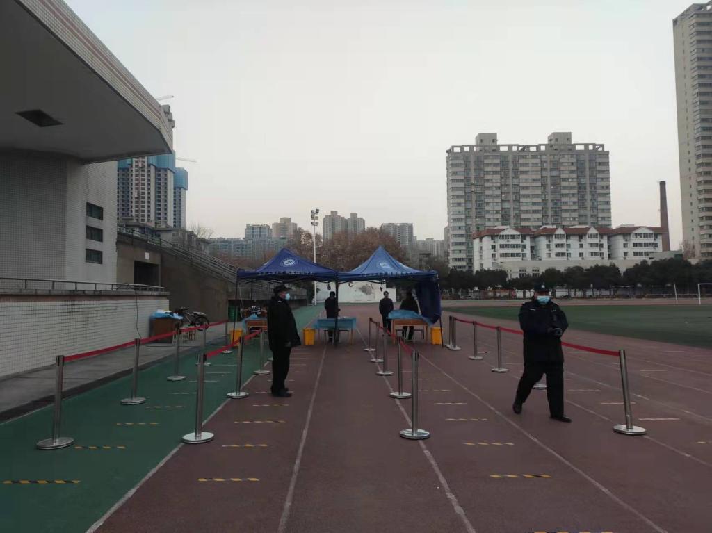 封闭大门、严格管控的同时,全力配合学校开展全员核酸检测工作。抽调骨干队员和门岗下班的保卫干部继续到核酸检测现场执行安保工作。开展核酸检测通道设置、“一米线”粘贴、秩序维护等一系列工作,确保核酸检测现场安全、有序。截止12月30日,已顺利完成了beat365第十轮核酸检测安保任务。在核酸检测点入口处,执勤干部、队员发现异常情况,及时报学校疫情防控办进行处置。
