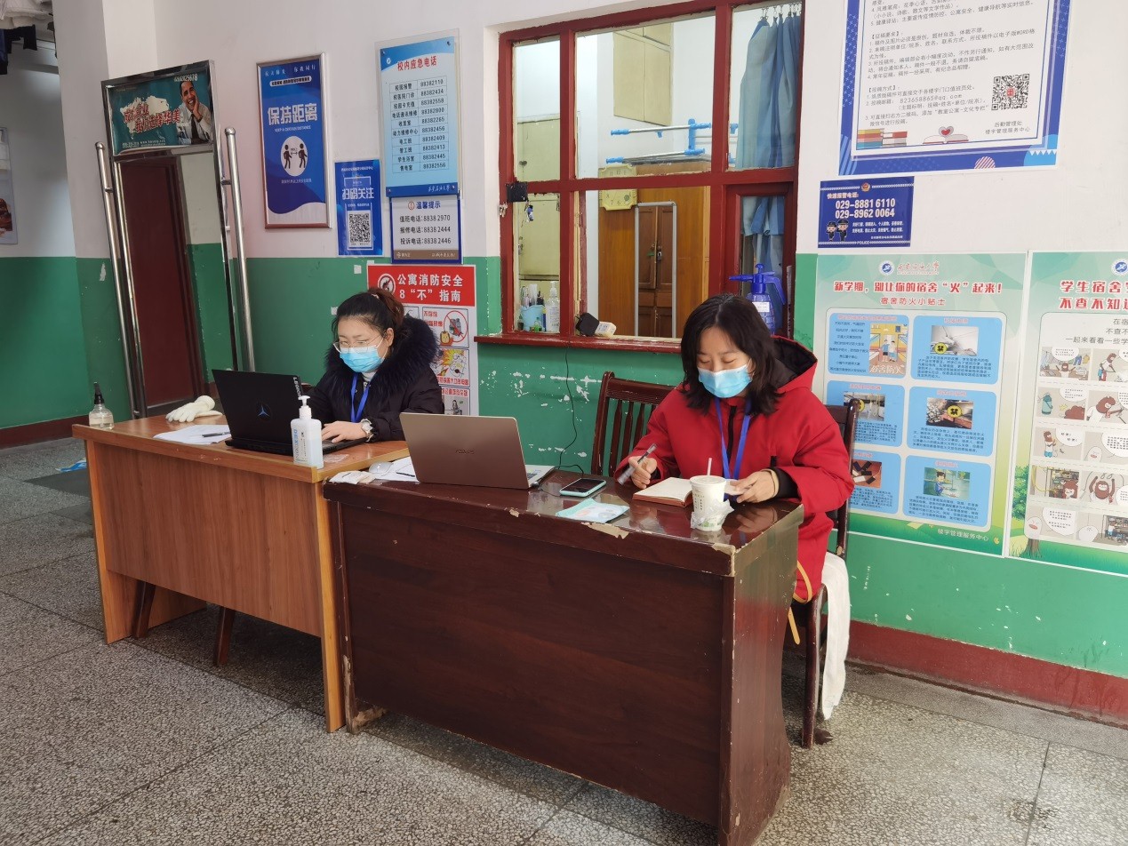 为保证封校期间雁塔校区研究生就餐、洗浴的有序进行,研究生导师们主动承担疫情防控工作,配合做好核酸检测、各宿舍楼值班执勤等秩序维持工作,勇担责任,冲锋在疫情防控第一线。
