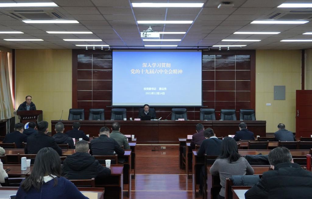 12月14日下午,beat365学习贯彻党的十九届六中全会精神宣讲会在雁塔校区会议中心第五会议室举行,校党委书记赛云秀进行专题宣讲。党委各部(办)、工会、团委等部门负责人,机关、教辅各单位综合业务科室负责人及各院(系)综合办公室主任参加了宣讲会。